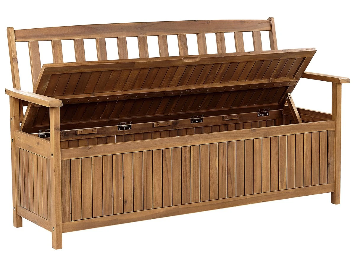 Banco de exterior. Añade modernidad a tu zona exterior con este banco de estilo rústico. Está fabricado a partir de madera de acacia resistente y de bajo mantenimiento. El almacenaje oculto bajo el asiento ofrece el suficiente espacio para guardar las herramientas de jardín o las fundas de los muebles. Detalles: Tipo de Producto: Banco Estilo: Tradicional Color: Madera clara Tipo de material: Madera maciza Material principal: Madera de acacia Acabado: Aceitado Dimensiones: Altura del apoyabrazos: 64 cm Profundidad: 60 cm Altura del asiento: 45 cm Ancho: 160 cm Altura: 91 cm Superficie del asiento: 154×45 cm Peso: 27 kg Capacidad de peso: 300 kg La oferta incluye: 1 x Banco Ventajas: Diseño clásico, Brinda un toque acogedor a cualquier espacio, Los nudos y vetas de madera natural hacen que cada pieza sea única, Práctico espacio de almacenaje para todos tus accesorios, Permanece estable incluso en superficies irregulares Información de montaje: Requiere montaje completo. 45-60 min. Información adicional: El producto viene con un libro de cuidados detallado para ayudarte a mantener tus muebles en las mejores condiciones durante muchos años. Consulta estos consejos para garantizar el mantenimiento adecuado de tus muebles nuevos – encontrarás las instrucciones de mantenimiento junto con el manual de montaje. Por favor, ten en cuenta que la madera es un producto natural, y cada pieza puede presentar ligeras variaciones. Las diferencias en el color o la textura, como las arrugas u otras características naturales, no se consideran un defecto ni tampoco una base de reclamación Texto de resistencia: Gracias a su resistencia al agua, puedes utilizar el producto al aire libre y dejarlo a la intemperie durante lluvias ligeras. Si no es posible guardarlo en un lugar cerrado y protegido, recomendamos utilizar una funda protectora. La exposición prolongada a la humedad puede provocar daños en el mueble. Resistencia: Agua ligera / humedad Consejos de mantenimiento: Madera de acacia: 1.Limpiar con un limpiador suave y un paño suave en la dirección de la veta. Secar con un paño inmediatamente después de limpiar 2.Durante el invierno o en condiciones climáticas adversas, utilice una funda protectora o guarde los muebles en el interior 3.Los muebles con acabado de aceite deben volverse a engrasar antes de ponerlos en uso y al menos una vez al año, especialmente en el clima húmedo.