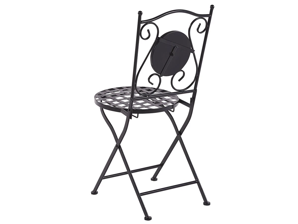 Juego de sillas. Disfruta de un momento de descanso al aire libre con este conjunto de 2 sillas de balcón. Están fabricadas de metal resistente al agua y fácil de limpiar. El respaldo tallado y el patrón de mosaico con azulejos de cerámica llaman la atención. La función plegable facilita el almacenamiento. Detalles: Tipo de Producto: Silla de jardín Estilo: Retro Color: Negro Tipo de material: Metal Material principal: Hierro Material adicional: Cerámica Material de las patas: Metal Material del asiento: Metal Apoyabrazo: No Acabado: Revestimiento en polvo Plegable: Sí Apilable: No Dimensiones: Profundidad: 45 cm Altura del asiento: 45 cm Ancho: 38 cm Altura: 89 cm Superficie del asiento: 38×38 cm Peso: 7 kg Capacidad de peso: 120 kg La oferta incluye: 2 x Silla Ventajas: Ideal para uso al aire libre, Plegable, ahorra espacio Información de montaje: Requiere montaje parcial Texto de resistencia: El producto es resistente al agua, lo que significa que no se dañará expuesto a la lluvia o en contacto con otros líquidos. Puede dejarlo al aire libre incluso durante fuertes lluvias o humedad. Durante la temporada de invierno es recomendable almacenar el producto en el interior o bajo una cubierta impermeable. Resistencia: Intemperie Consejos de mantenimiento: Hierro: 1.Quite las tapas protectoras con regularidad para que salga todo el líquido, déjelas secar y utilice un spray anticorrosión si es necesario 2.Limpiar con detergentes suaves 3.Los muebles de acero y sus elementos no deben exponerse al agua. De lo contrario, existe la posibilidad de que el agua oxidada salga de las tuberías del marco 4.Cuando no estén en uso, los muebles deben guardarse en el interior o bajo una cubierta protectora 5.Para aumentar la durabilidad del artículo, manténgalo seco y recuerde la limpieza regular 6.Cualquier daño a la capa de pintura exterior debe protegerse de la humedad 7.Para garantizar la protección contra la corrosión, evite los limpiadores alcalinos o ácidos. Después de limpiar, secar bien.