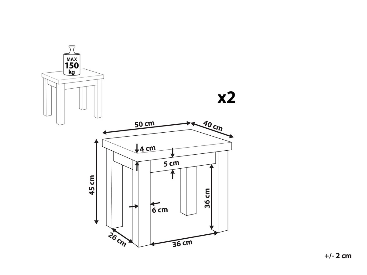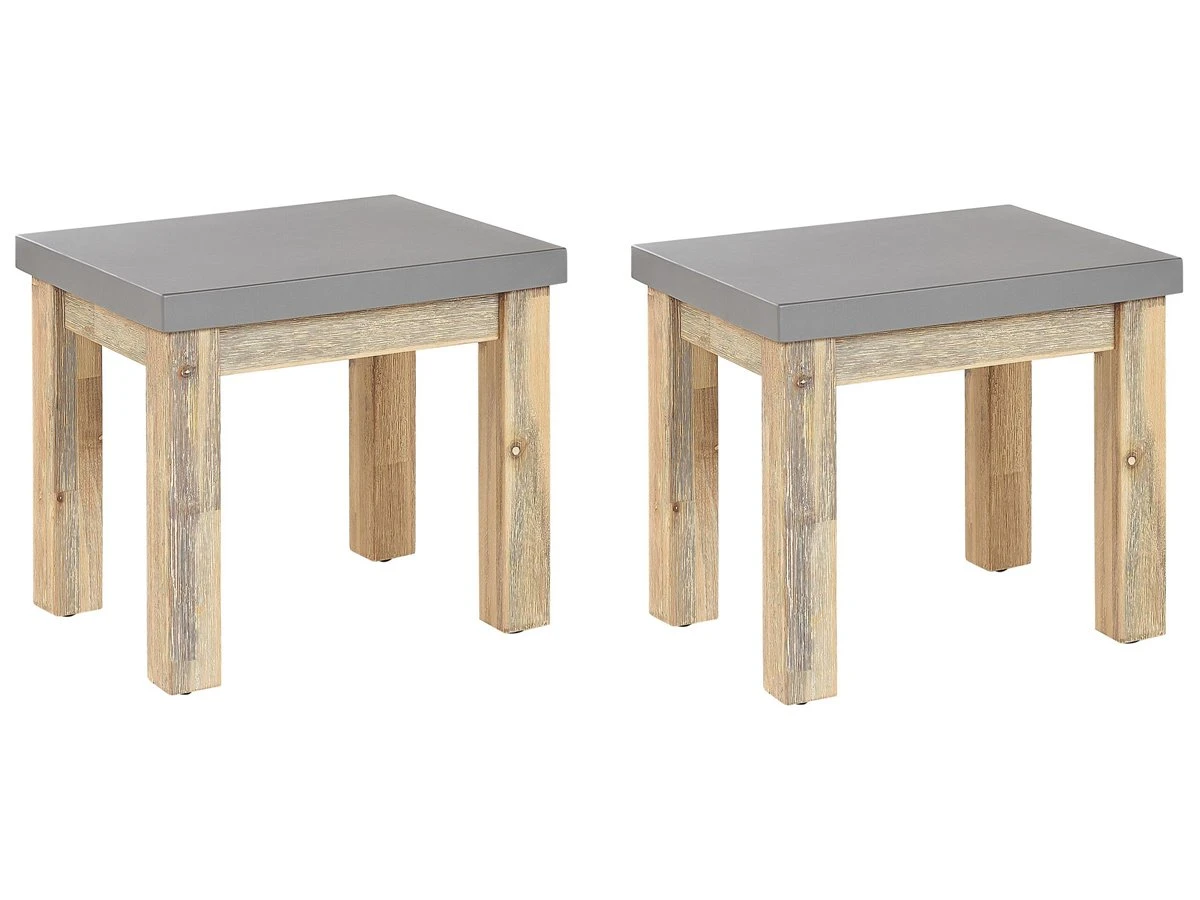 Conjunto de 2 taburetes de jardín. Si te gustan el estilo industrial y las reuniones al aire libre con familia o amigos, este conjunto de 2 taburetes de jardín es perfecto para ti. Están fabricados a partir de cemento reforzado y una base de madera. La madera de acacia en acabado natural garantiza durabilidad y ofrece un aspecto clásico, aprovechando su estética natural. Estos taburetes son idóneos para prácticamente cualquier área al aire libre, desde un balcón hasta un jardín. Combínalos con una mesa a juego y crea la ambientación perfecta para tus reuniones al aire libre. Detalles: Tipo de Producto: Silla de jardín Estilo: Industrial Color: Gris Tipo de material: Cemento Material principal: Cemento reforzado con fibra Material adicional: Madera de acacia Material de las patas: Madera maciza Material del asiento: Cemento Apoyabrazo: No Acabado: Mate Plegable: No Apilable: No Dimensiones: Profundidad: 40 cm Altura del asiento: 45 cm Ancho: 50 cm Altura: 45 cm Superficie del asiento: 50×40 cm Peso: 12 kg Capacidad de peso: 150 kg La oferta incluye: 2 x Taburete Ventajas: Patas estables y resistentes, Colores elegantes y diseño original, Ideal para uso en interiores y exteriores, Fabricación sólida y precisa Información de montaje: Requiere montaje de las patas. 20-40 min. Información adicional: Dependiendo de la humedad del aire, los muebles de concreto pueden tener grietas, agujeros o cambiar de color. Es una característica natural del material y no afecta su calidad. El producto viene con un libro de cuidados detallado para ayudarte a mantener tus muebles en las mejores condiciones durante muchos años. Consulta estos consejos para garantizar el mantenimiento adecuado de tus muebles nuevos – encontrarás las instrucciones de mantenimiento junto con el manual de montaje. Texto de resistencia: El producto es resistente al viento, por lo que no debe volcarse ni perder estabilidad con ráfagas de viento. Resistencia: Agua ligera / humedad Consejos de mantenimiento: Cemento reforzado con fibra: 1.Durante el invierno utilice una funda protectora o guarde los muebles en el interior 2.Para evitar manchas, no utilice detergentes cremosos o detergentes con ácidos o aceites. Madera de acacia: 1.Durante el invierno o en condiciones climáticas adversas, utilice una funda protectora o guarde los muebles en el interior 2.Los muebles con acabado de aceite deben volverse a engrasar antes de ponerlos en uso y al menos una vez al año, especialmente en el clima húmedo 3.Limpiar con un limpiador suave y un paño suave en la dirección de la veta. Secar con un paño inmediatamente después de limpiar.