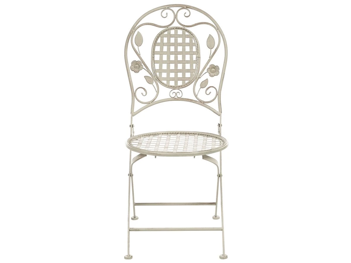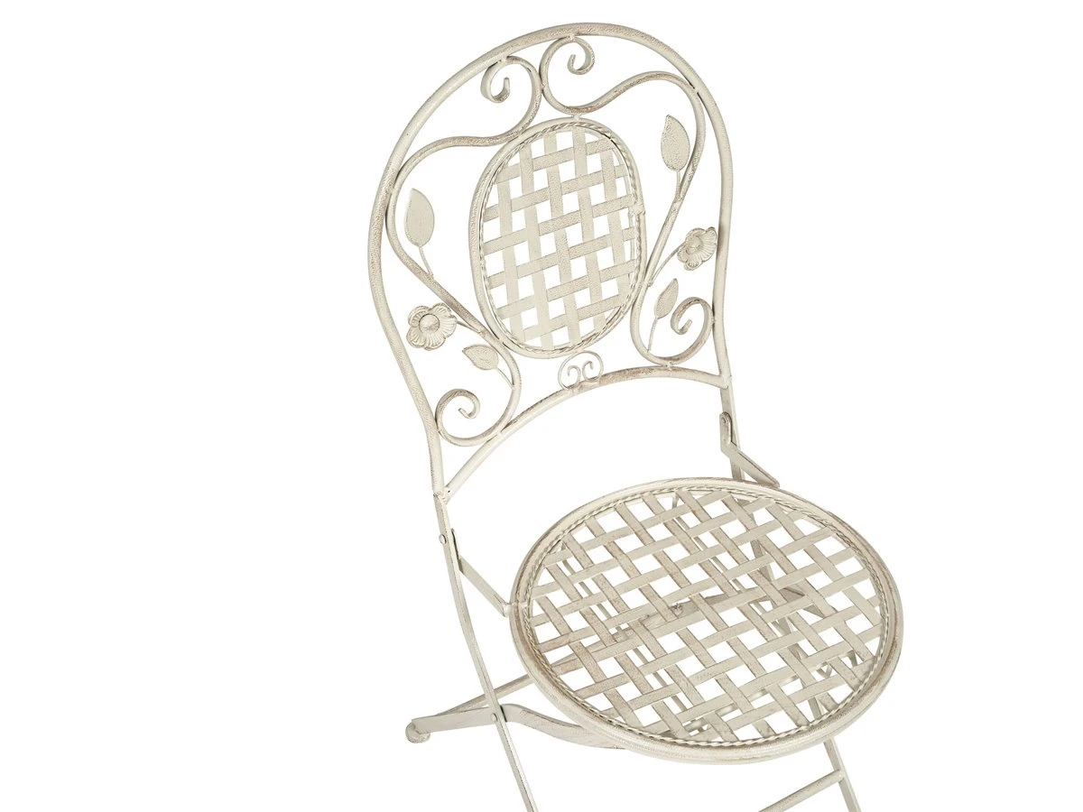 Conjunto de 4 sillas de balcón. Añade un toque de estilo provenzal a tu balcón o jardín con este conjunto de 4 sillas de balcón. Fabricadas a partir de hierro con recubrimiento en polvo, presentan un efecto envejecido y un diseño con adornos florales. Combínalas con sillas a juego y crea el lugar perfecto para el desayuno o el almuerzo al aire libre. Las sillas son plegables, por lo que puedes guardarlas con facilidad durante la temporada baja. Detalles: Tipo de Producto: Silla de jardín Estilo: Retro Color: Blanco Tonalidad: Blanco crema Tipo de material: Metal Material principal: Hierro Material de las patas: Metal Material del asiento: Metal Apoyabrazo: No Acabado: Revestimiento en polvo Plegable: Sí Apilable: No Dimensiones: Profundidad: 52 cm Altura del asiento: 42 cm Ancho: 43 cm Altura: 93 cm Superficie del asiento: 40×40 cm Peso: 5 kg Capacidad de peso: 120 kg La oferta incluye: 4 x Silla Ventajas: Estilo retro, Resistencia UV, Fabricación sólida y precisa, Plegable para un fácil almacenamiento, Compacto y perfecto para espacios limitados , Patas con tapas anti-deslizantes Información de montaje: No requiere montaje Información adicional: Abre el embalaje con cuidado, especialmente cuando utilizas herramientas afiladas o puntiagudas, ya que pueden dañar el producto, El efecto desgastado o las manchas visibles son intencionales y no se consideran un defecto. Texto de resistencia: Gracias a su resistencia al agua, puedes utilizar el producto al aire libre y dejarlo a la intemperie durante lluvias ligeras. Si no es posible guardarlo en un lugar cerrado y protegido, recomendamos utilizar una funda protectora. La exposición prolongada a la humedad puede provocar daños en el mueble. Resistencia: Agua ligera / humedad Consejos de mantenimiento: Hierro: 1.Quite las tapas protectoras con regularidad para que salga todo el líquido, déjelas secar y utilice un spray anticorrosión si es necesario 2.Limpiar con detergentes suaves 3.Los muebles de acero y sus elementos no deben exponerse al agua. De lo contrario, existe la posibilidad de que el agua oxidada salga de las tuberías del marco 4.Cuando no estén en uso, los muebles deben guardarse en el interior o bajo una cubierta protectora 5.Para aumentar la durabilidad del artículo, manténgalo seco y recuerde la limpieza regular 6.Cualquier daño a la capa de pintura exterior debe protegerse de la humedad 7.Para garantizar la protección contra la corrosión, evite los limpiadores alcalinos o ácidos. Después de limpiar, secar bien.