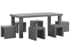 Set de jardín mesa con 4 sillas. Mejora la decoración de tu exterior con este conjunto de jardín constituido por una mesa y 4 sillas. Todos los elementos del juego están fabricados a partir de materiales resistentes a la intemperie. El tablero está hecho de cemento reforzado de fácil mantenimiento mientras que los muebles, de madera maciza de acacia que resalta el aspecto minimalista y moderno del conjunto. Cada silla incluye un cojín a juego para mayor comodidad. La combinación de colores hace que los muebles destaquen y mejoren cualquier decoración. Detalles: Tipo de Producto: Conjunto de comedor Estilo: Moderno Color: Gris Tonalidad: Gris claro Tipo de material: Cemento Material principal: Cemento reforzado con fibra Material adicional: Madera de acacia Material de la superficie: Cemento Composición del Material: 100% Poliéster Acabado: Laminado Densidad de espuma del asiento: 20 kg/m3 Dimensiones: Dimensiones de la silla: 64x71x89 cm Espesor del asiento: 5 cm Altura del asiento: 48 cm Dimensiones de la mesa: 90x90x76 cm Peso: 77 kg Capacidad de peso de la silla: 150 kg Capacidad de peso de la mesa: 150 kg La oferta incluye: 4 x Silla, 1 x Mesa, 4 x Cojín del asiento Ventajas: Perfecto para cenar en grupos más grandes, Perfecto para todo tipo de exterior, Acabado de hormigón para aspecto industrial, Materiales de la más alta calidad, Ideal para uso en interiores y exteriores, Cojines extraíbles para un fácil mantenimiento Información de montaje: Requiere montaje completo. Más de 60 min. Información adicional: Dependiendo de la humedad del aire, los muebles de concreto pueden tener grietas, agujeros o cambiar de color. Es una característica natural del material y no afecta su calidad. El producto viene con un libro de cuidados detallado para ayudarte a mantener tus muebles en las mejores condiciones durante muchos años. Consulta estos consejos para garantizar el mantenimiento adecuado de tus muebles nuevos – encontrarás las instrucciones de mantenimiento junto con el manual de montaje. Texto de resistencia: Gracias a su resistencia al agua, puedes utilizar el producto al aire libre y dejarlo a la intemperie durante lluvias ligeras. Si no es posible guardarlo en un lugar cerrado y protegido, recomendamos utilizar una funda protectora. La exposición prolongada a la humedad puede provocar daños en el mueble. Resistencia: Agua ligera / humedad Consejos de mantenimiento: Cemento reforzado con fibra: 1.Durante el invierno utilice una funda protectora o guarde los muebles en el interior 2.Para evitar manchas, no utilice detergentes cremosos o detergentes con ácidos o aceites. Madera de acacia: 1.Durante el invierno o en condiciones climáticas adversas, utilice una funda protectora o guarde los muebles en el interior 2.Los muebles con acabado de aceite deben volverse a engrasar antes de ponerlos en uso y al menos una vez al año, especialmente en el clima húmedo 3.Limpiar con un limpiador suave y un paño suave en la dirección de la veta. Secar con un paño inmediatamente después de limpiar. Material sintético: 1.El material es extremadamente resistente a la intemperie. Sin embargo, se recomienda utilizar una funda protectora para la temporada de invierno o, si es posible, guardar los muebles en un lugar fresco y seco 2.Manténgalo alejado de fuentes de calor, como parrilla o fuego, ya que las chispas pueden causar daños graves. No coloque utensilios calientes directamente sobre la superficie, 3.Limpiar con un limpiador a base de jabón suave y un paño suave