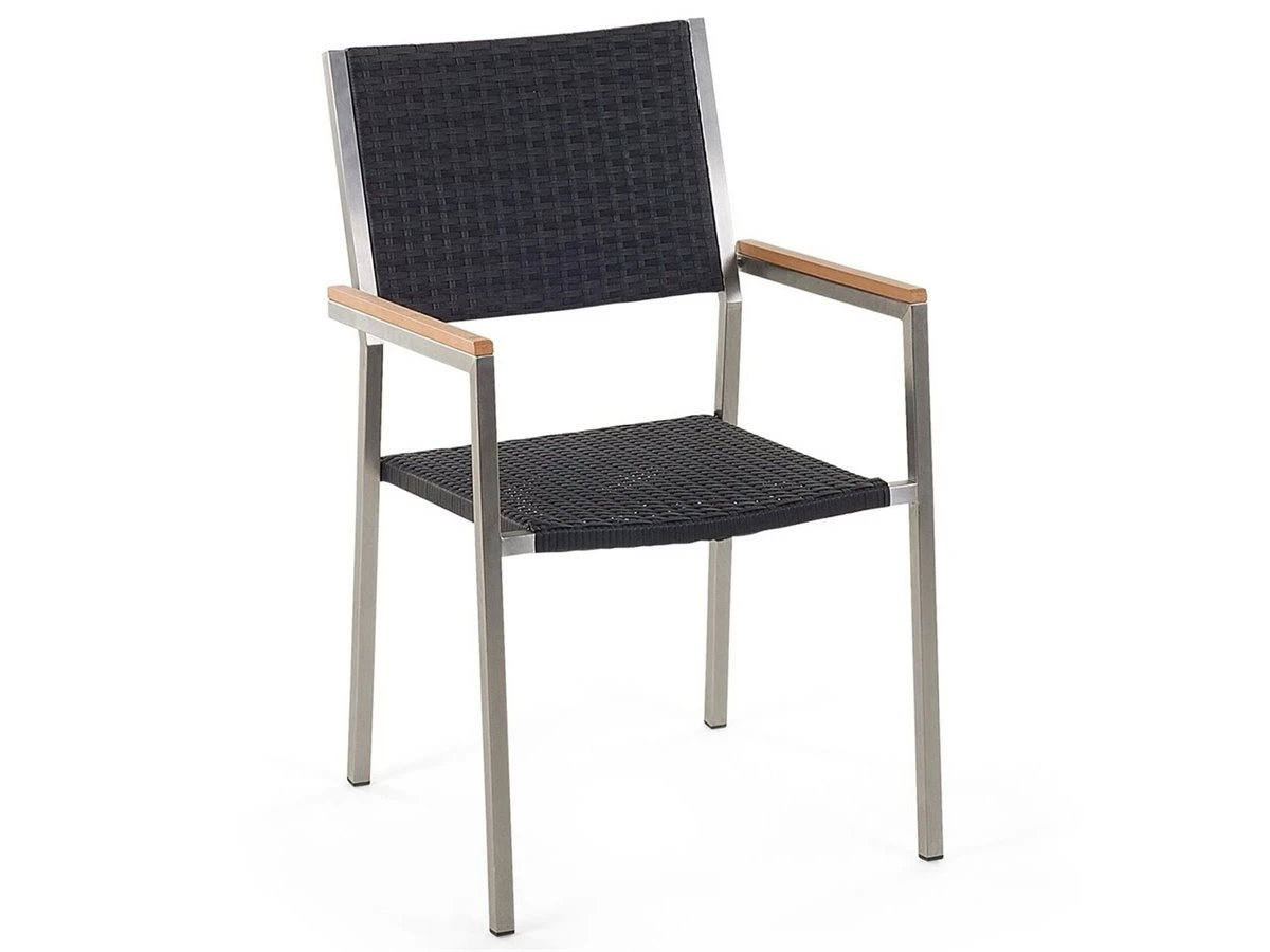Moderno conjunto de jardín de mesa y 6 sillas. Añade elegancia a tu zona exterior con este conjunto de comedor. Está constituido por una mesa y 6 sillas. Fabricado a partir de acero inoxidable duradero y vidrio templado. Las sillas son resistentes a los rayos UV y apilables, lo que permite ahorrar espacio. Detalles: Tipo de Producto: Conjunto de comedor Estilo: Moderno Color: Negro Tipo de material: Vidrio Material principal: Vidrio templado Material adicional: Madera plástica Material de la superficie: Vidrio Composición del Material: 90% PVC Acabado: Cepillado Dimensiones: Dimensiones de la silla: 55x58x88 cm Altura del asiento: 44 cm Dimensiones de la mesa: 180x90x76 cm Peso: 87 kg Capacidad de peso de la silla: 160 kg Capacidad de peso de la mesa: 70 kg La oferta incluye: 1 x Mesa, 6 x Silla Ventajas: Confort del asiento óptimo, Diseño atemporal, Perfecto para todo tipo de exterior, Materiales de la más alta calidad, Detalles perfectos, Resistencia UV 4 (ISO 105-B02, Mantenimiento sencillo, Apilable para un almacenaje mejor, Tablero en vidrio templado de seguridad Información de montaje: Requiere montaje parcial. 20-40 min. Información adicional: El producto viene con un libro de cuidados detallado para ayudarte a mantener tus muebles en las mejores condiciones durante muchos años. Consulta estos consejos para garantizar el mantenimiento adecuado de tus muebles nuevos – encontrarás las instrucciones de mantenimiento junto con el manual de montaje. Texto de resistencia: Gracias a su resistencia al agua, puedes utilizar el producto al aire libre y dejarlo a la intemperie durante lluvias ligeras. Si no es posible guardarlo en un lugar cerrado y protegido, recomendamos utilizar una funda protectora. La exposición prolongada a la humedad puede provocar daños en el mueble. Resistencia: Agua ligera / humedad Consejos de mantenimiento: Vidrio templado: 1.Secar después de la lluvia o la nieve. Durante el invierno, utilice una funda protectora o guarde los muebles en el interior 2.Para evitar rayones, no use un limpiador cremoso 3.Limpiar con un detergente suave o acondicionador de vidrio con un paño suave. Secar después de limpiar. Acero inoxidable: 1.Las lluvias ácidas, el agua salada y las tormentas de arena pueden dañar la capa protectora 2.Durante el invierno, utilice una funda protectora o guarde los muebles en el interior 3.Durante la lluvia, se recomienda utilizar una funda protectora 4.Limpiar solo con agentes de limpieza suaves. No utilice limpiadores alcalinos o ácidos. Ratán sintético: 1.Se recomienda utilizar una funda protectora para la temporada de invierno o, si es posible, para mantener los muebles secos y frescos en el interior 2.Limpiar con detergentes a base de jabón. No utilizar limpiadores químicos corrosivos 3.Los utensilios o accesorios de vidrio pueden sobrecalentar la superficie 4.Para alargar la vida útil del mueble, protéjalo de la exposición directa al sol.