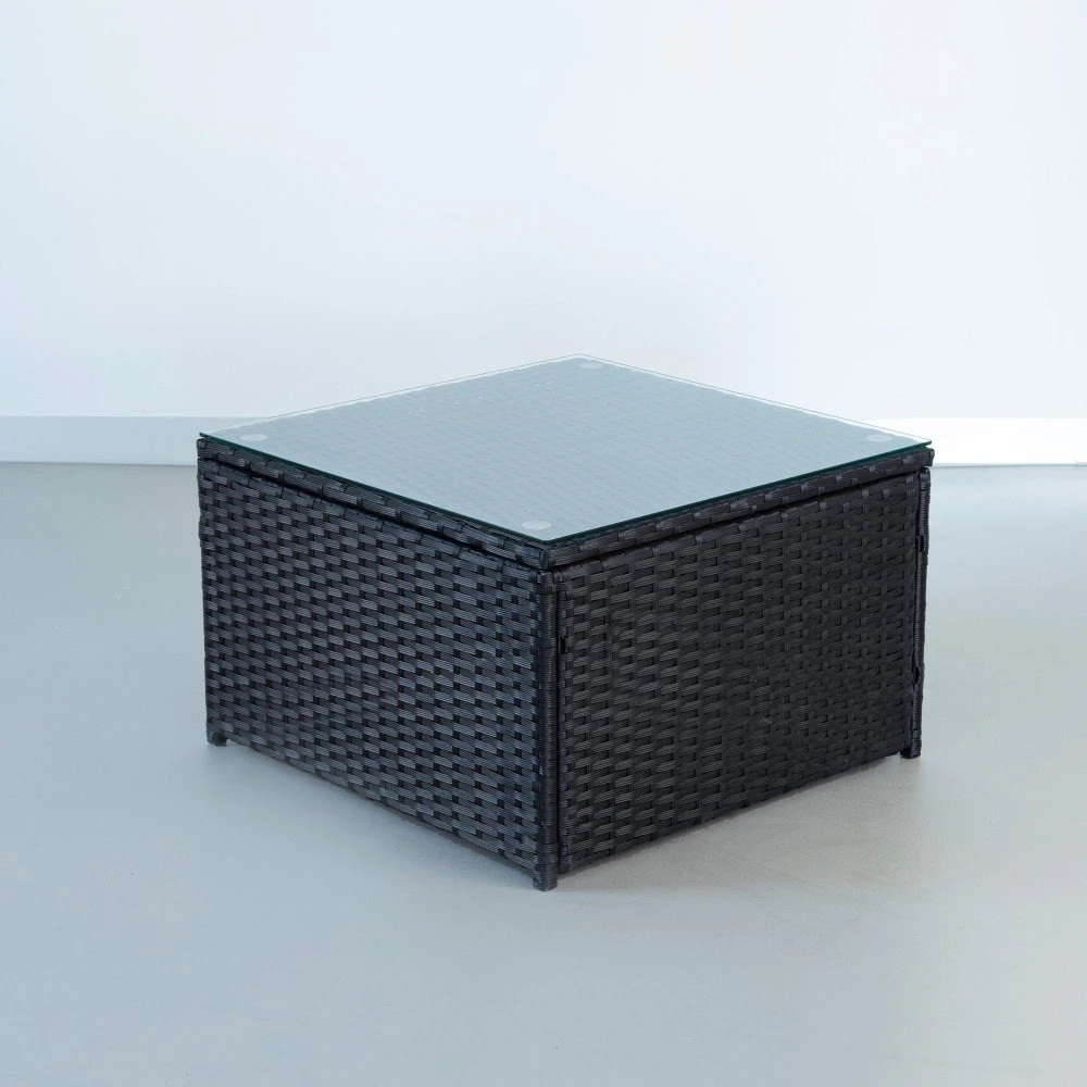 - Piezas: 1 sofá modular con reposabrazos y 1 mesa central con cristal