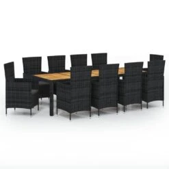 Juego De Comedor De Jardín 11 Pzas Con Cojines Ratán PE Negro VidaXL