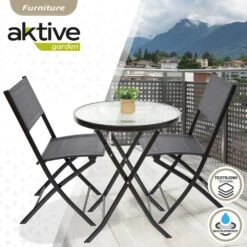 Conjunto Muebles Terraza Y Balcón C/2 Sillas Y Mesa Redonda Plegables Aktive