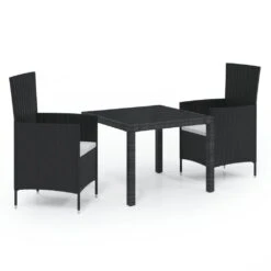 Juego De Comedor De Jardín 3 Pzas Con Cojines Ratán PE Negro VidaXL
