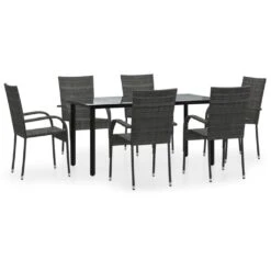 Juego De Comedor De Jardín 7 Piezas Ratán Sintético Gris VidaXL