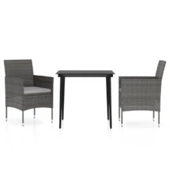 Juego De Comedor De Jardín De 3 Piezas Y Cojines Gris VidaXL