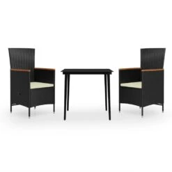 Juego De Comedor De Jardín De 3 Piezas Y Cojines Negro VidaXL