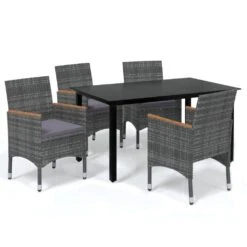 Juego Muebles Jardín 5 Pzas Con Cojines Ratán Sintético Gris VidaXL
