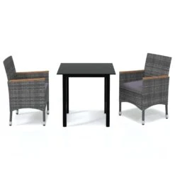 Set Comedor De Jardín 3 Piezas Con Cojines Ratán Sintético Gris VidaXL