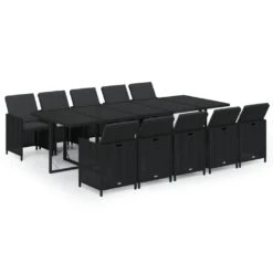Set Comedor De Jardín 13 Piezas Y Cojines Ratán Sintético Negro VidaXL