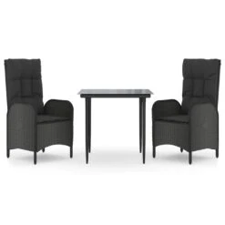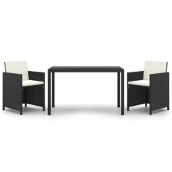 Set Comedor De Jardín 3 Pzas Con Cojines Ratán Sintético Negro VidaXL