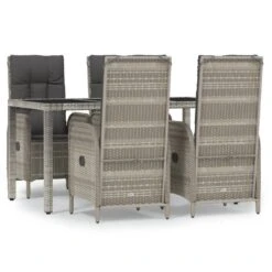 Set De Comedor De Jardín 5 Pzas Y Cojines Ratán Sintético Gris VidaXL