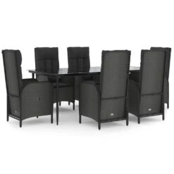 Set De Comedor De Jardín 7 Pzas Y Cojines Ratán Sintético Negro VidaXL