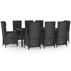 Set Comedor De Jardín 9 Piezas Y Cojines Ratán Sintético Negro VidaXL