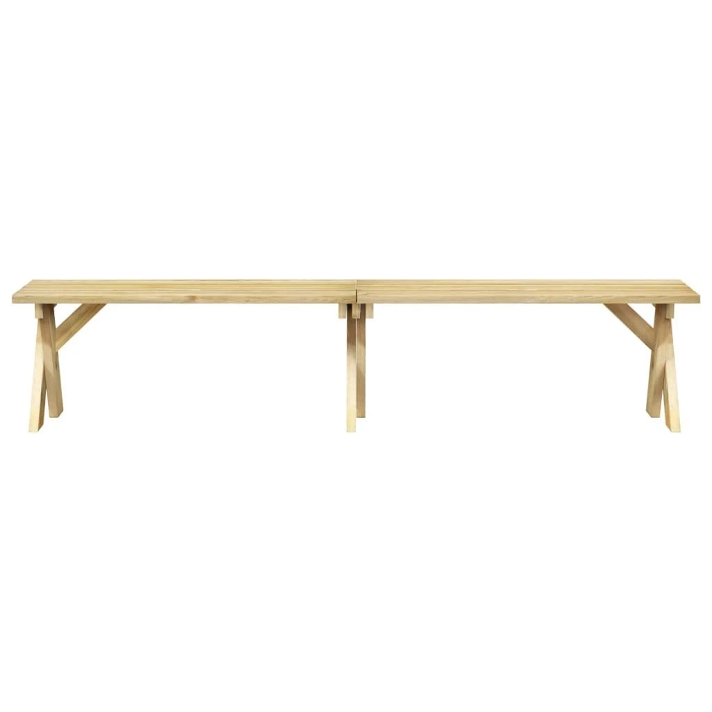 Con un diseño elegante a la par que práctico, ¡este juego de jardín mejorará el espacio al aire libre de tu casa! Hecho en madera de pino impregnada de verde, este juego de comedor de jardín de madera es muy robusto, duradero y resistente a la corrosión. El conjunto de muebles es una opción ideal para momentos de relax en el jardín de una casa de campo romántica o cerca de un estanque de jardín idílico para cenar con familiares y amigos. Ten en cuenta que la madera es un producto natural y puede presentar imperfecciones. Nota: Para prolongar la vida útil de los muebles de exterior, te recomendamos que los limpies con regularidad y no los dejes al aire libre sin protección innecesariamente.Limpia: Usa una solución de jabón suave.Almacenamiento: Si es posible, guárdalos en un lugar fresco y seco en el interior. Si el producto se almacena al aire libre, protégelo con una funda impermeable. Limpia y seca el exceso de agua o nieve de las superficies planas después de una lluvia o nevada. Permite la ventilación para evitar daños relacionados con la humedad. Mesa:Material: Madera de pino verde impregnadaDimensiones: 220 x 73 x 70 cm (ancho x profundo x altoBanco:Material: Madera de pino verde impregnadaDimensiones: 220 x 36 x 44 cm (ancho x profundo x altoResistente a la corrosión Requiere montaje: SíLa entrega incluye:1 x Mesa2 x Bancos