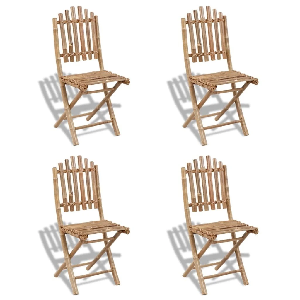 Este juego de comedor de bambú tiene un diseño elegante y consta de 1 mesa y 4 sillas. Su elegancia simple agregará un toque de encanto rústico a su comida al aire libre. Hecho de bambú robusto, el juego de comedor es fuerte y duradero. También es resistente a la intemperie, impermeable y fácil de limpiar con un paño húmedo. La mesa y las sillas son plegables para ahorrar espacio de almacenamiento cuando no están en uso. La entrega incluye 1 mesa plegable y 4 sillas plegables. Nota: Para prolongar la vida útil de los muebles de exterior, te recomendamos que los limpies con regularidad y no los dejes al aire libre sin protección innecesariamente.Limpieza: Usa una solución de jabón suaveAlmacenamiento: Si es posible, guarda el producto en un lugar fresco y seco en el interior. Si el producto se almacena al aire libre, protégelo con una funda impermeable. Limpia y seca el exceso de agua o nieve de las superficies planas después de una lluvia o nevada. Permite la ventilación para evitar daños relacionados con la humedad. Material: BambúDimensiones de la mesa: 80 x 70 cm (Ø x alturaDimensiones de la silla : 38,5 x 44 x 92 cm (anchura x profundidad x alturaLa entrega incluye 1 mesa y 4 sillas