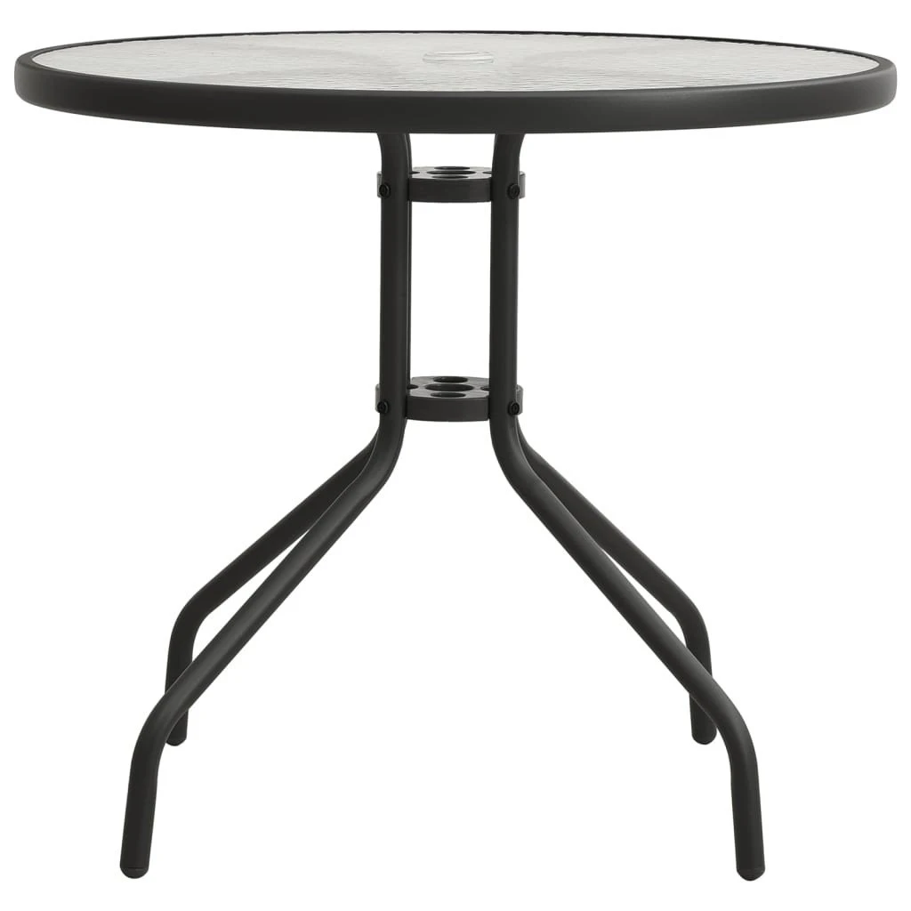Con un diseño elegante y una estructura de acero duradero, este juego de muebles de comedor es una opción perfecta para tu jardín o patio. La sencilla elegancia de este juego de comedor hace que las cenas diarias sean especiales. Este set de comedor para exterior cuenta con un estructura de acero con recubrimiento en polvo, el cual hace que tanto la mesa como las sillas sean estables y duraderas. Las cómodas sillas de comedor están tapizadas con textileno resistent fácil de limpiar. Las sillas se pueden plegar para ahorrar espacio. Nota: Para prolongar la vida útil de los muebles de exterior, te recomendamos que los limpies con regularidad y no los dejes al aire libre sin protección innecesariamente.Limpiar: Usa una solución de jabón suaveAlmacenamiento: Si es posible, guarda el producto en un lugar fresco y seco en el interior. Si el producto se almacena al aire libre, protégelo con una funda impermeable. Limpia y seca el exceso de agua o nieve de las superficies planas después de una lluvia o nevada. Permite la ventilación para evitar daños relacionados con la humedad. Mesa:Color: Gris antracitaMaterial: Acero con recubrimiento en polvo, vidrio templadoDimensiones: 80 x 71 cm (diámetro x altoSilla:Color: GrisMaterial: Acero con recubrimiento de polvo, textileneDimensiones: 45 x 54 x 86 cm (ancho x profundo x altoRequiere montaje: SíLa entrega incluye:1 x Mesa4 x Sillas
