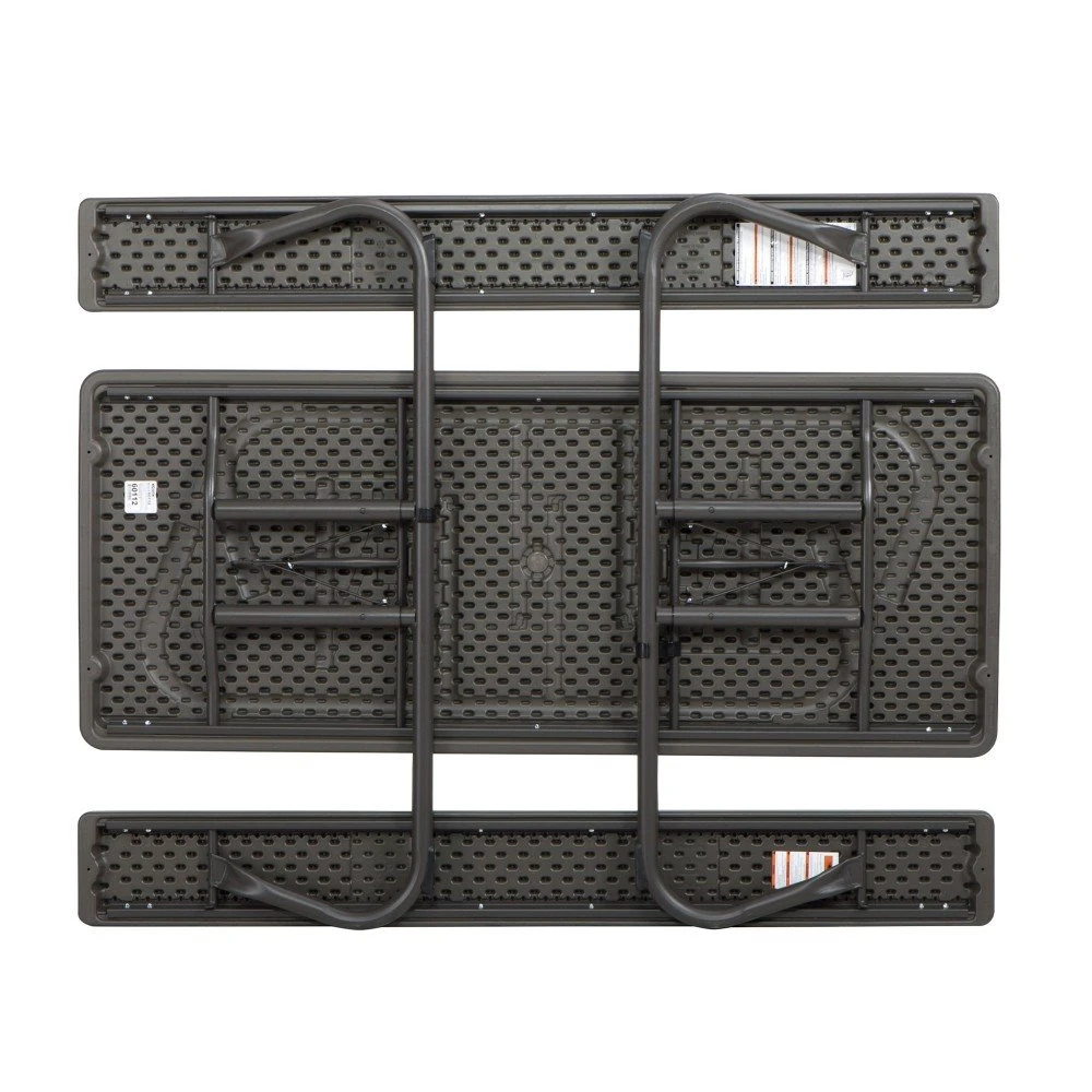 - Mesa plegable con bancos textura símil de madera, medidas mesa abierta: 183×76 cm, alto: 74 cm, medidas bancos: 183x23x47,5 cm, soportan 408 Kg, color marrón