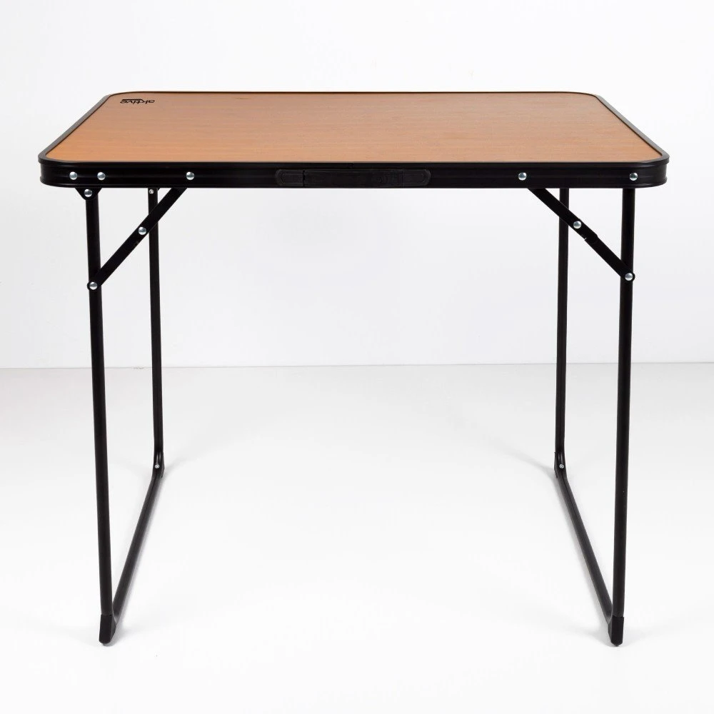 ¡Mejora tus escapadas al aire libre con esta mesa plegable Aktive Camping! Está fabricada con estructura de acero color negro y su tablero es de madera MDF efecto bambú. Una mesa elegante y funcional, que ocupa plegada 80×60 cm y que podrás llevar a todas partes cómodamente gracias a su asa de mano incluida. Además, lleva incorporados topes antivuelco en las patas que le aportan una mayor estabilidad y seguridad. Ideal para actividades al aire libre como picnics, barbacoas o acampadas.