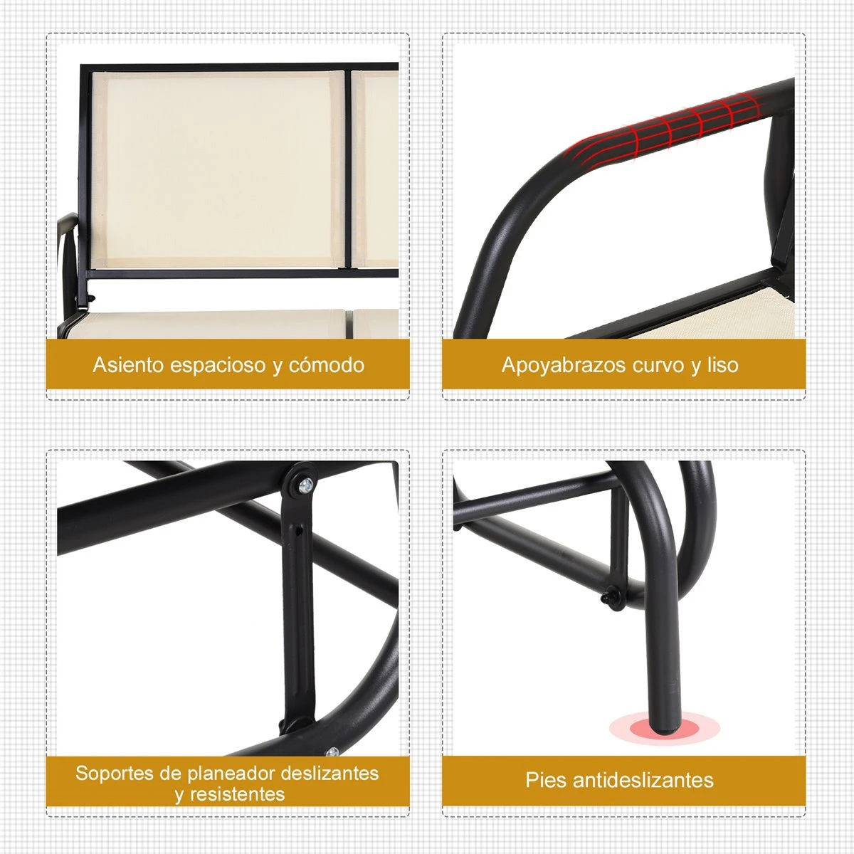 - – Asiento y respaldo anchos, suficiente para que se sienten cómodamente dos personas