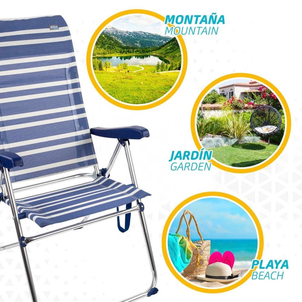 - Pack ahorro 2 sillas playa altas modelo Mykonos color azul y blanco Aktive Beach