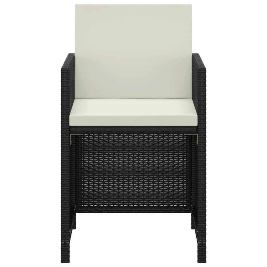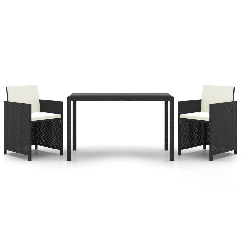 Este juego de comedor de jardín, con un diseño elegante y contemporáneo, será una excelente opción para cenar o relajarse en el jardín. Apto para uso en exteriores: Hecho de ratán sintético impermeable y resistente a la intemperie, este juego de comedor para jardín es fácil de limpiar, resistente y adecuado para el uso diario. Material de primera calidad: La estructura de acero con recubrimiento de polvo hace que la mesa y las sillas sean robustas y duraderas. La superficie de vidrio es ideal para colocar bebidas, comida u objetos decorativos. Los cojines del asiento y respaldo rellenos de espuma son gruesos y suaves para además aportar comodidad al sentarse. Las fundas de los cojines tienen cremalleras para poderlas quitar y lavar.Diseño flexible: Puedes tirar el respaldo hacia abajo y almacenar las sillas debajo de la mesa, para ahorrar un valioso espacio de almacenamiento cuando no estés usando el set. Gracias a su estructura ligera, todos los artículos son fáciles de mover. Nota:Para prolongar la vida de tus muebles de exterior, te recomendamos que los protejas con una funda impermeable. Color: NegroColor de cojines: Blanco cremaMaterial: Ratán PE, acero, vidrio templadoMaterial del cojín: Funda de poliéster con relleno de espumaDimensiones de la mesa: 123 x 60 x 74 cm (largo x ancho x altoDimensiones de la silla: 52 x 56 x 85 cm (ancho x profundo x altoAltura del reposabrazos desde el suelo: 67 cmGrosor del cojín: 5 cmFundas de cojín extraíbles y lavablesRequiere montaje: SíLa entrega contiene:1 x Mesa2 x Silla2 x Cojines de asiento2 x Cojines de respaldo