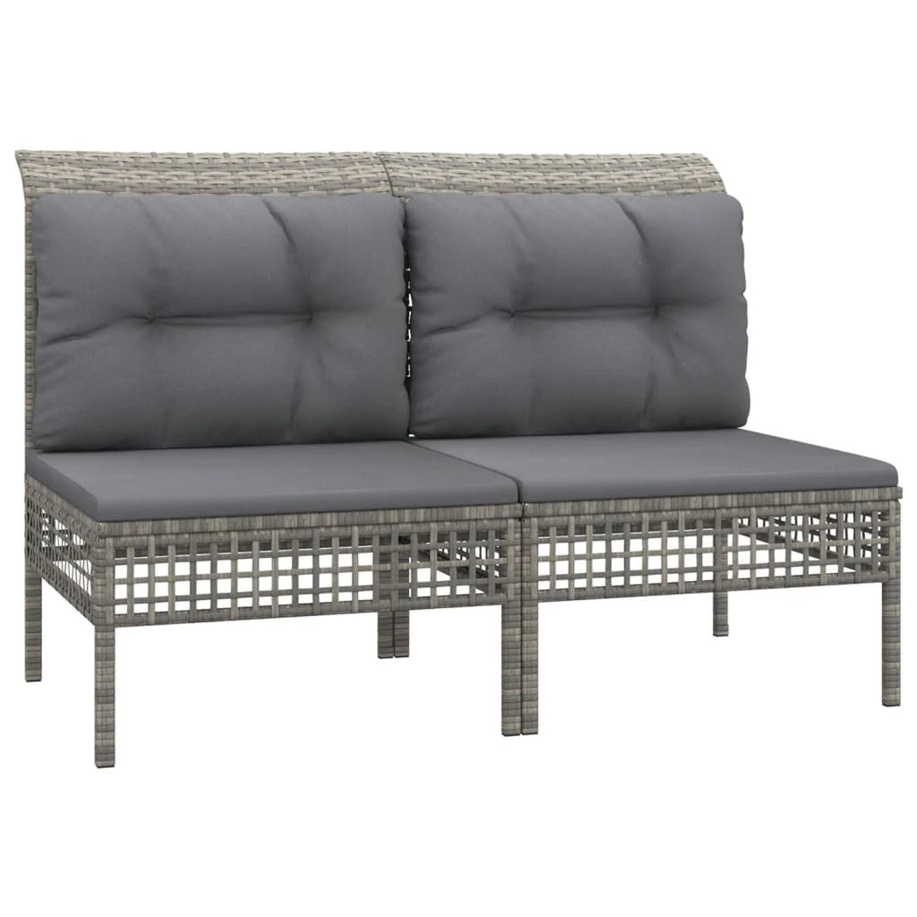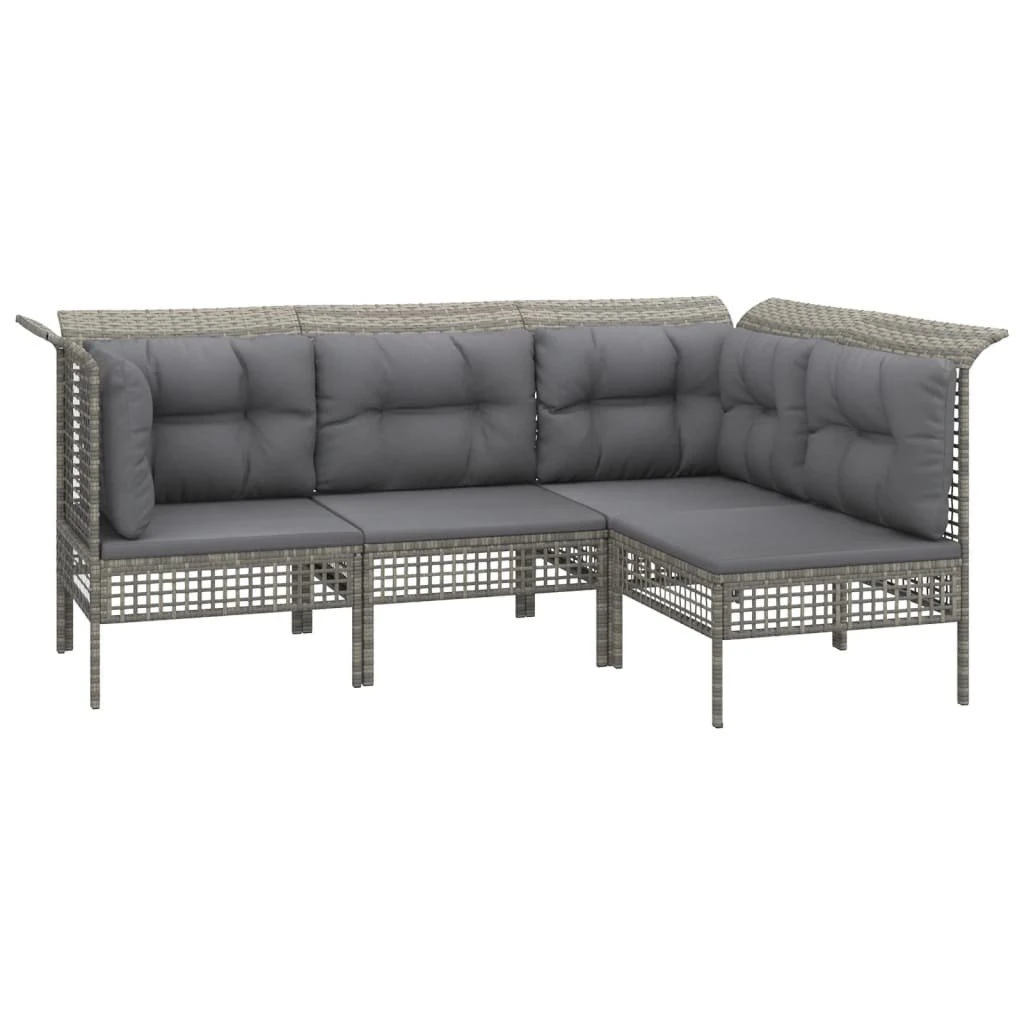 ¡Disfruta de un agradable café en el espacio al aire libre de la casa con este juego de muebles para jardín! Es un aporte perfecto para el jardín y la terraza, y crea además una impresión duradera. Material resistente a la intemperie: El ratán sintético es resistente a la intemperie y fácil de limpiar. La parte exterior se mantiene hermosa durante mucho tiempo. Es más económico que otros materiales, además de ofrecer una gran calidad, comodidad y aspecto estético.Estructura robusta y estable: La estructura de acero del conjunto de muebles garantiza su solidez y estabilidad.Cómodo asiento: El respaldo aporta un plus de comodidad al juego de muebles. Además, los cojines gruesos y acolchados proporcionan comodidad al asiento.Diseño modular: El juego de muebles de jardín es flexible y fácil de mover, por lo que puedes combinarlo con otros segmentos modulares de la tienda web para crear tus propias configuraciones personales de juegos de muebles para jardín. Nota:Para asegurarte de que tus muebles de exterior se mantengan hermosos, recomendamos protegerlos con una funda impermeable. Color: GrisColor de cojín: Gris oscuroMaterial: Ratán sintético, acero con recubrimiento en polvoSofá central:Dimensiones: 55 x 65 x 75 cm (ancho x profundo x altoAnchura del asiento: 55 cmProfundidad del asiento: 55 cmAltura del asiento desde el suelo: 32 cmDiseño de cuadrículaCapacidad de carga máxima: 110 kgSofá esquinero:Dimensiones: 65 x 65 x 75 cm (ancho x profundo x altoAnchura del asiento: 55 cmProfundidad del asiento: 55 cmAltura del asiento desde el suelo: 32 cmDiseño de cuadrículaCapacidad de carga máxima: 110 kgReposapiés: Dimensiones: 55 x 55 x 32 cm (ancho x profundo x altoDiseño de cuadrículaCapacidad de carga máxima: 110 kgCojín:Material: Tela (100% poliésterMaterial del relleno del cojín de asiento: EspumaMaterial del relleno del cojín de respaldo: Fibra de algodónDimensiones del cojín de asiento: 55 x 55 x 3 cm (ancho x profundo x grosorDimensiones del cojín de respaldo: 48 x 39 x 10 cm (ancho x profundo x grosor / 56 x 39 x 10 cm (ancho x profundo x grosorRequiere montaje: SíLa entrega incluye:9 x Sofás centrales3 x Sofá esquinero1 x Reposapiés13 x Cojines de asiento15 x Cojines de respaldo