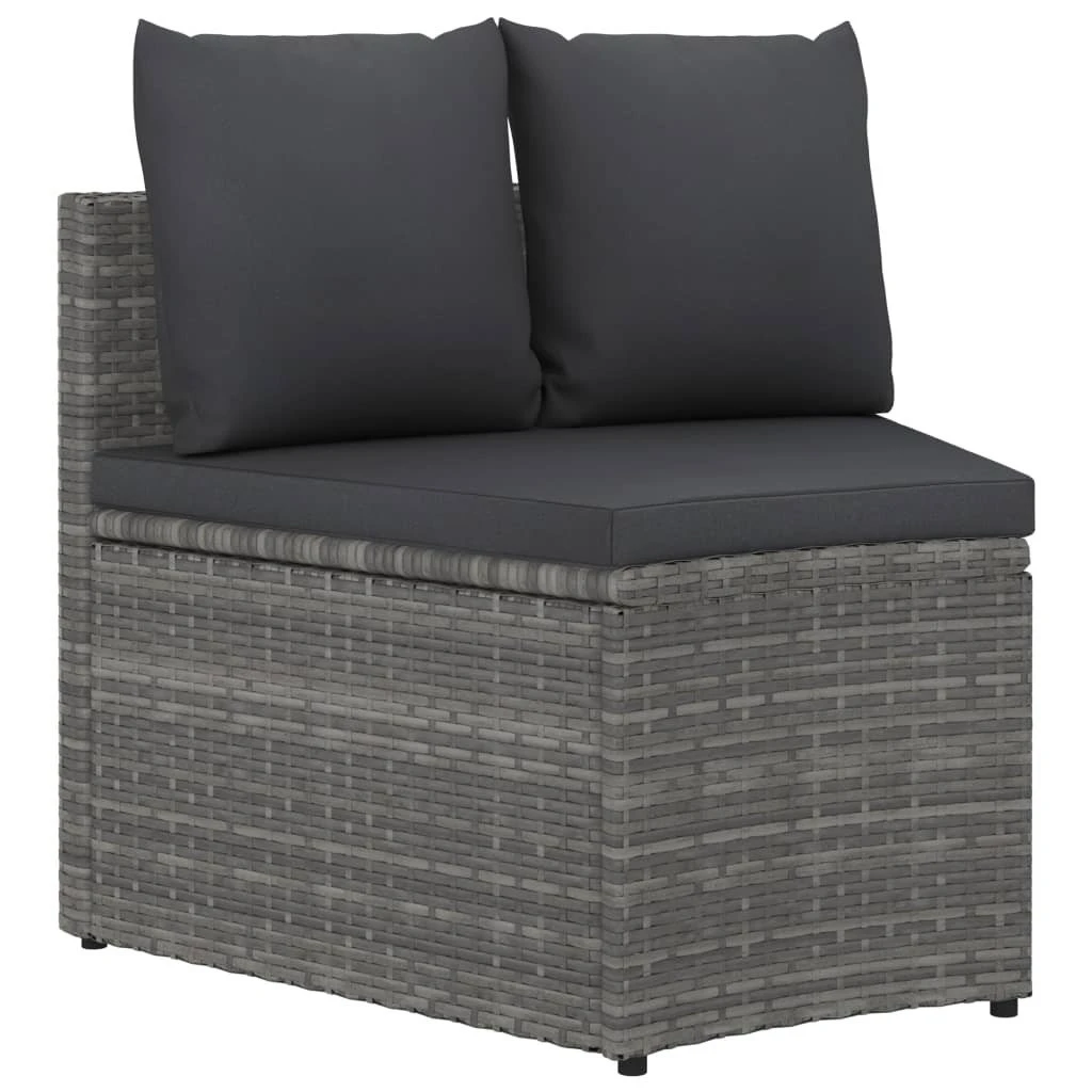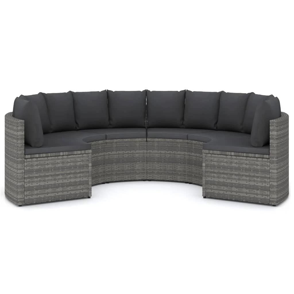 Crea un área de descanso relajante con este juego de muebles de jardín de ratán sintético. Este cómodo juego de muebles de jardín, con una estructura de acero con recubrimiento en polvo recubierto con PE ratán, es robusto y fácil de limpiar. Los sofás tienen forma de abanico, lo que lo convierte en una decoración perfecta en el exterior. Además, los asientos y respaldo densamente acolchados brindan la máxima comodidad en tu experiencia de asiento. Gracias a su construcción ligera, este juego de muebles de jardín es fácil de mover. Nota importante: Recomendamos cubrir el set de salón en condiciones de lluvia, nieve y heladas para que sea más duradero. Color: GrisColor del asiento: Gris oscuroMaterial: Ratán PE, acero con recubrimiento en polvo, tela (100% poliésterDimensiones de cada sofá: 88 x 66 x 67 cm (ancho x profundo x altoAltura del asiento desde el suelo: 39 cmGrosor del cojín del asiento: 5 cmDiseño en forma de abanicoIncluye patas ajustables para adaptarse a terrenos irregularesRequiere montaje: SíLa entrega incluye:6 x Sofás6 x Cojines de asiento12 x Cojines de respaldo