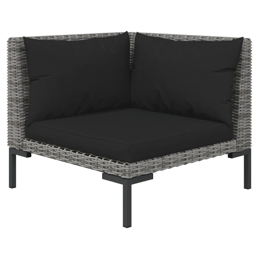 ¡Relájate y disfruta del espacio al aire libre de tu casa con este clásico juego de muebles para jardín! Estructura robusta: Con una estructura de acero con recubrimiento en polvo, el juego de muebles de patio es robusto y duradero. Construcción ligera: La construcción ligera hace que el juego de sofás sea fácil de mover.Material de primera calidad: Hecho de ratán PE semicircular, este juego de muebles para exteriores es resistente a la intemperie y al agua, fácil de limpiar y mantener. Cómodos cojines y almohadas: Los cojines y las almohadas acolchados gruesos y extraíbles brindan una comodidad óptima para que te sientes al aire libre. Nota:Recomendamos cubrir el conjunto de jardín en caso de lluvia, nieve y heladas para que dure más tiempo. Además, te recomendamos limpiarlo regularmente para alargar la vida de los muebles de exterior. No lo dejes al aire libre sin protección innecesariamente.Limpieza: Usa una solución de jabón suaveAlmacenamiento: Si es posible, guárdala en un lugar fresco y seco en el interior. Si el producto se almacena en el exterior, protégelo con una cubierta impermeable. Limpia y seca el exceso de agua o nieve de las superficies planas después de una lluvia o nevada. Permite la ventilación para evitar daños relacionados con la humedad. Color del ratán: Gris oscuroColor del cojín: NegroMaterial: Acero con recubrimiento en polvo, ratán PE semicircular, tablero de PC, tela (100 % poliésterMaterial de relleno: EspumaSofá central:Dimensiones: 70 x 70 x 61 cm (ancho x profundo x altoDimensiones de asiento: 70 x 60 cm (ancho x profundoAltura del asiento desde el suelo: 21 cmDimensiones del cojín del asiento: 68 x 58 cm (ancho x profundoDimensiones del cojín del respaldo: 68 x 37 cm (ancho x altoSofá esquinero:Dimensiones: 70 x 70 x 61 cm (ancho x profundo x altoDimensiones del asiento: 60 x 60 cm (ancho x profundoAltura del asiento desde el suelo: 21 cmDimensiones del cojín del asiento: 58 x 58 cm (ancho x profundoDimensiones del cojín del respaldo: 50/59 x 37 cm (ancho x altoMesa de centro:Dimensiones: 120 x 55 x 21 cm (largo x ancho x altoRequiere montaje: SíLa entrega contiene:2 x Sofás centrales3 x Sofá esquinero1 x Mesa de centro5 x Cojines de asiento8 x Cojines de respaldo