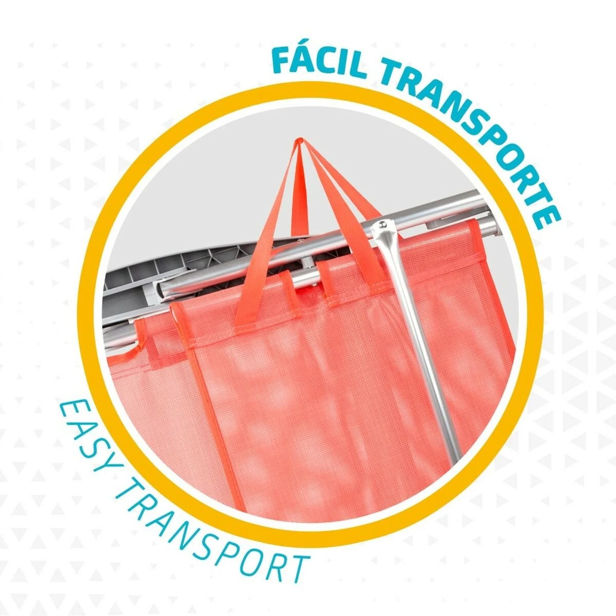 - Resistente: estructura de aluminio y asiento de textileno, soporta un peso máximo de 100 kg